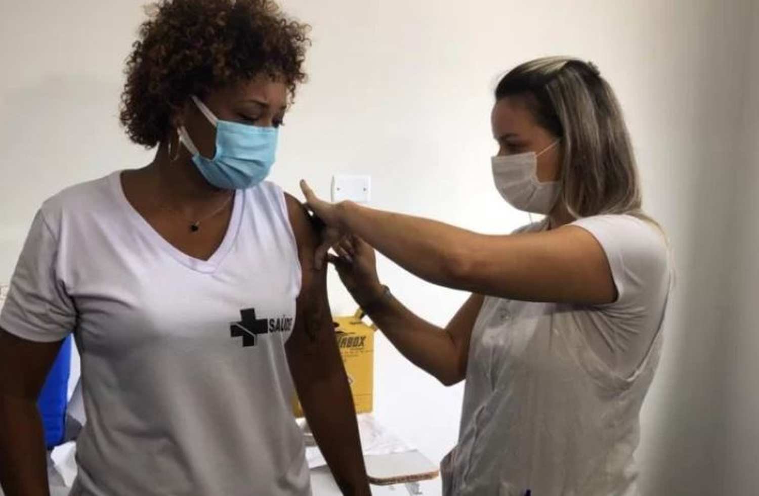 Ana Maria Fagundes, que trabalha há 5 anos como funcionária pública e Rosana Novaes Marques Ferreira, que está há 11 anos no cargo, foram as primeiras a receber a dose da vacina.