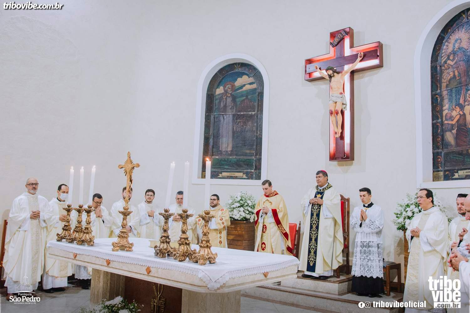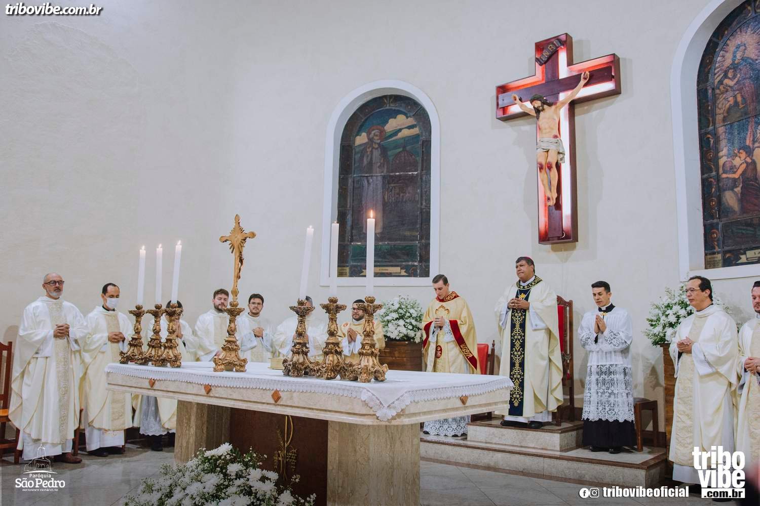 O site Tribo Vibe participou da missa de posse do novo padre que assume os trabalhos da Paróquia São Pedro, quem está a frente agora é o Padre Rafael Sotocorno, ele que veio da Paróquia Nossa Senhora do Carmo de Presidente Prudente para Epitácio, assumindo o lugar do querido padre Gerisvaldo. Veja um pouco de como foi as fotos clicadas por Edcarlo Fernandes.