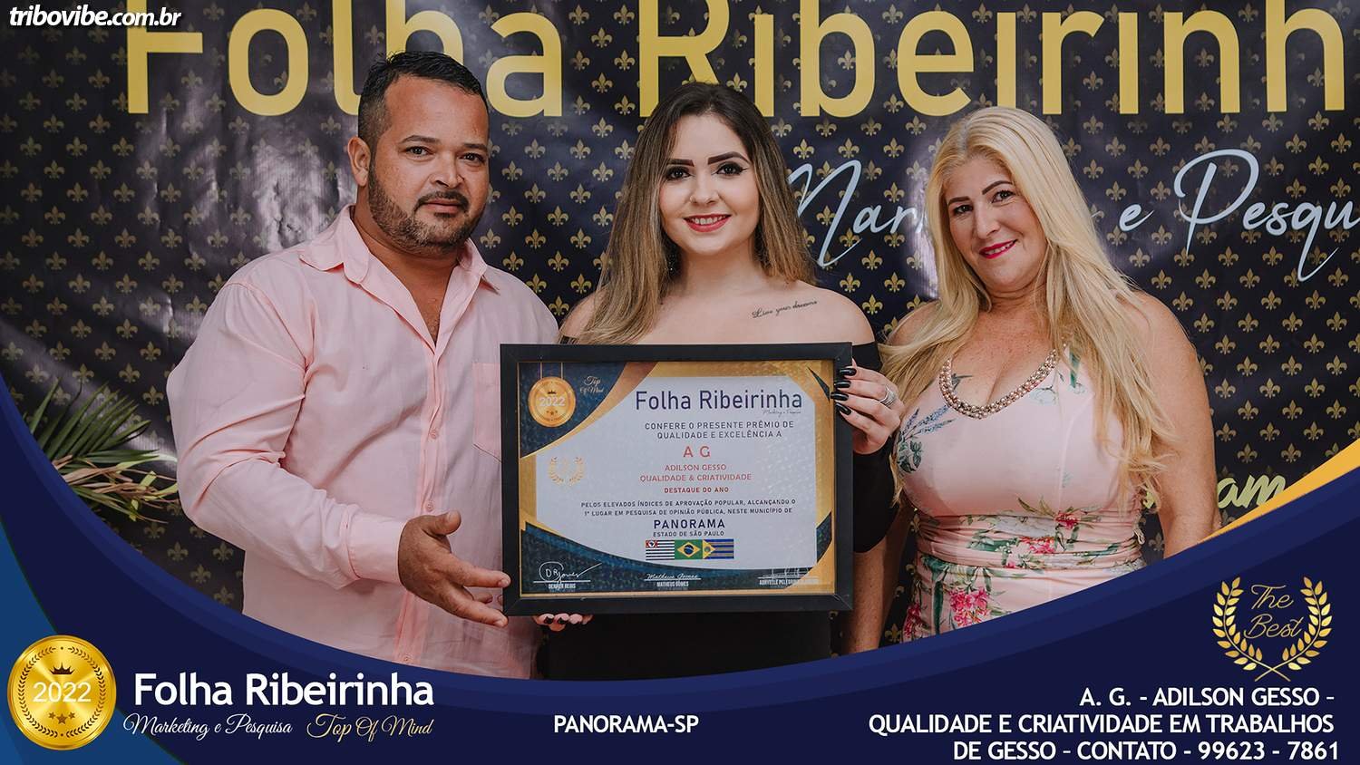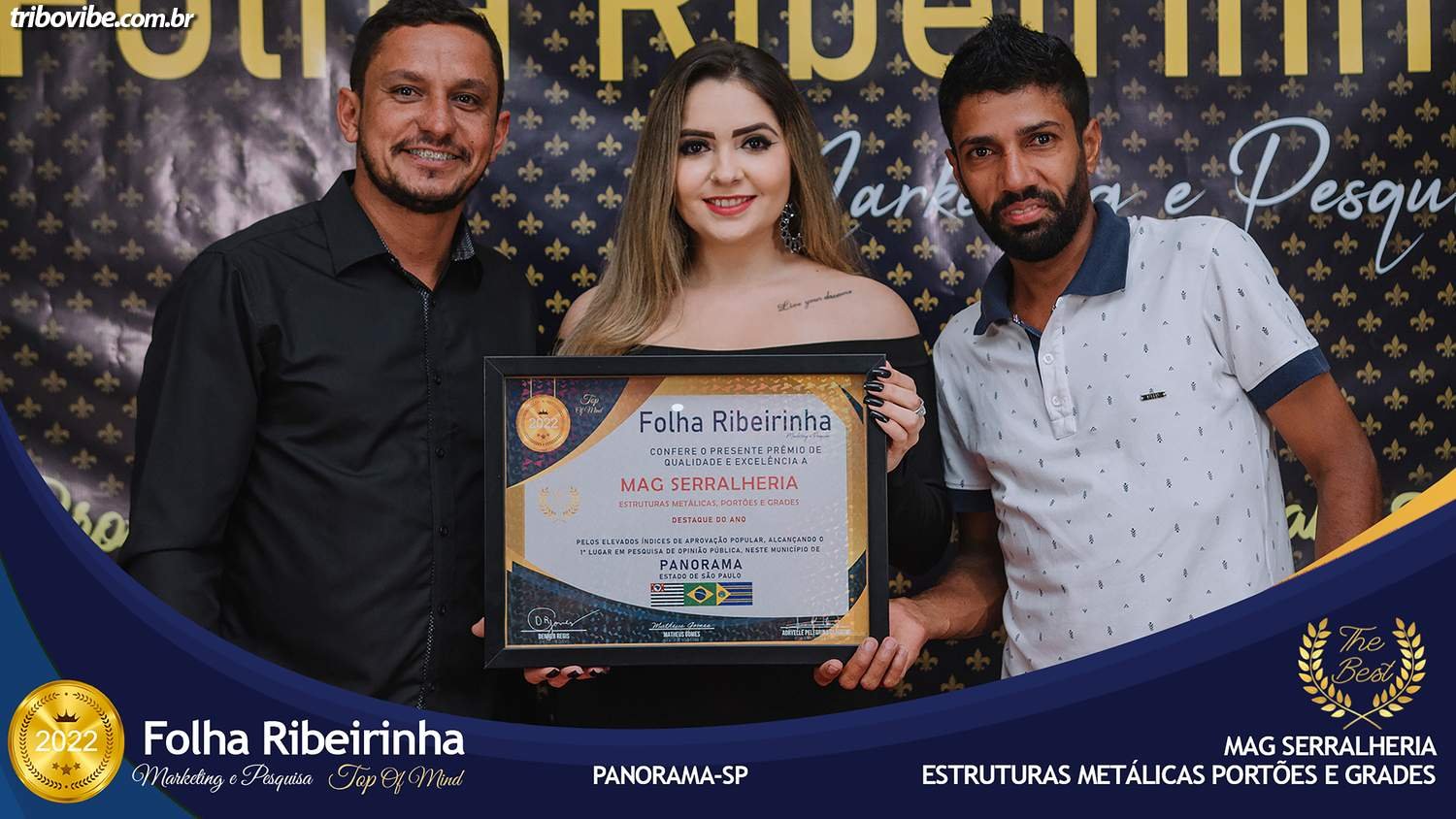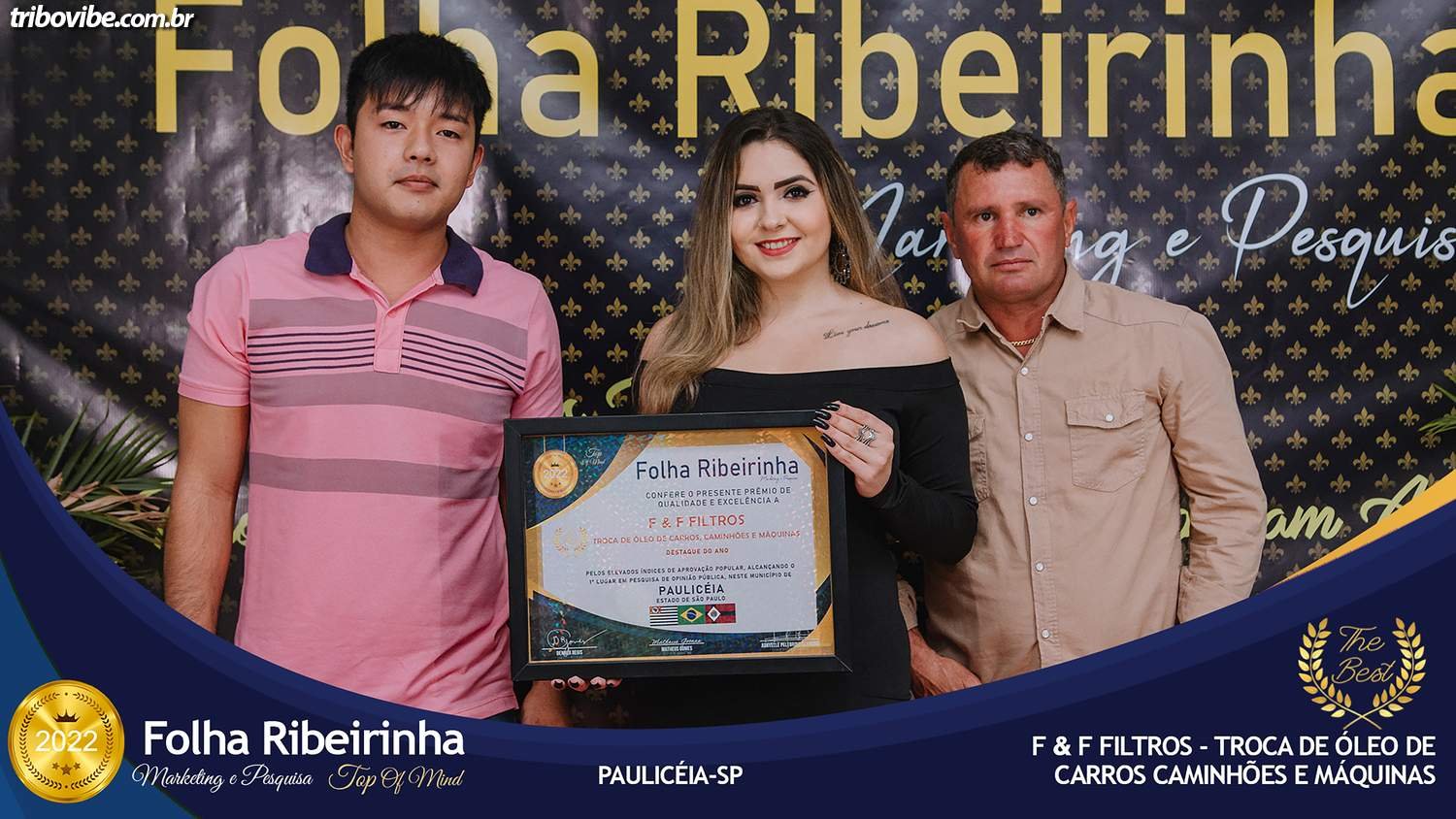 Folha Ribeirinha Marketing, Pesquisas, Produções e Eventos apresenta as melhores Empresas, Personalidades, Empreendedores e Profissionais certificados com o Prêmio Top de Qualidade e Excelência 2022 pelo Primeiro Lugar em suas respectivas Categorias de Atuação em Panorama, Paulicéia e Santa Mercedes – SP e Brasilândia – MS. Evento realizado na noite de quarta-feira08 de Junho.
