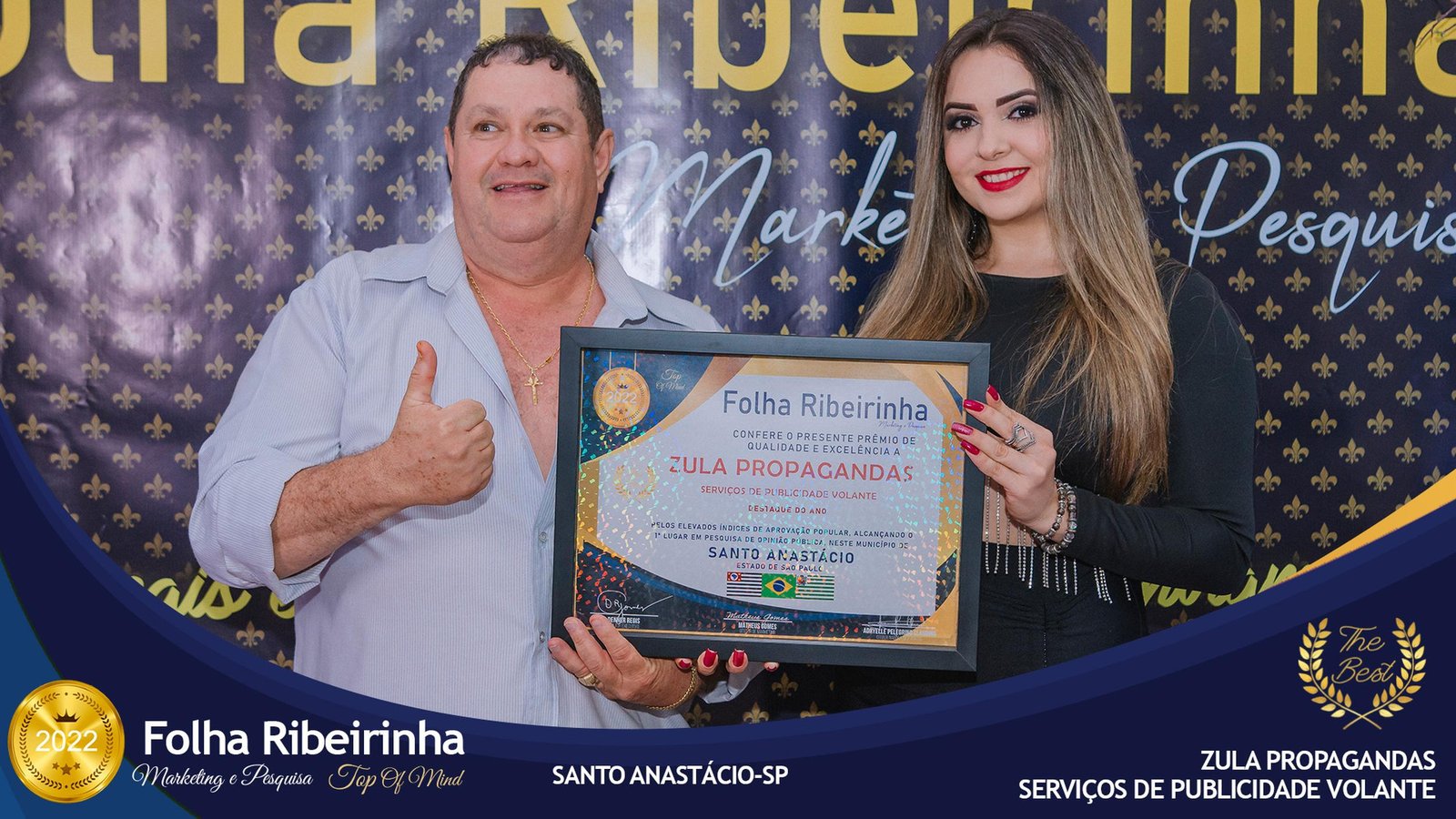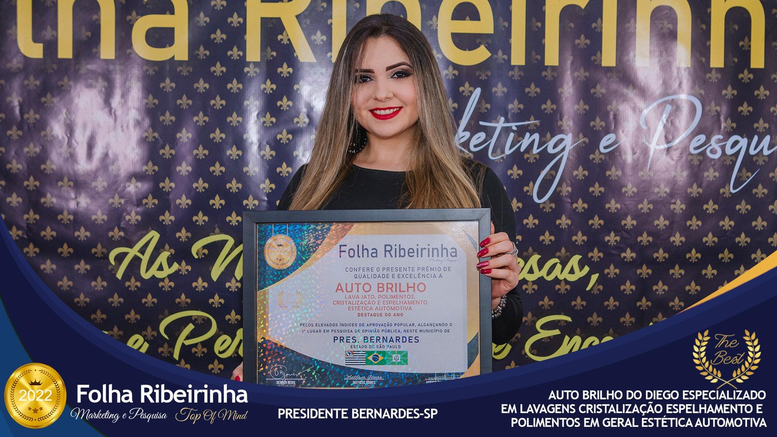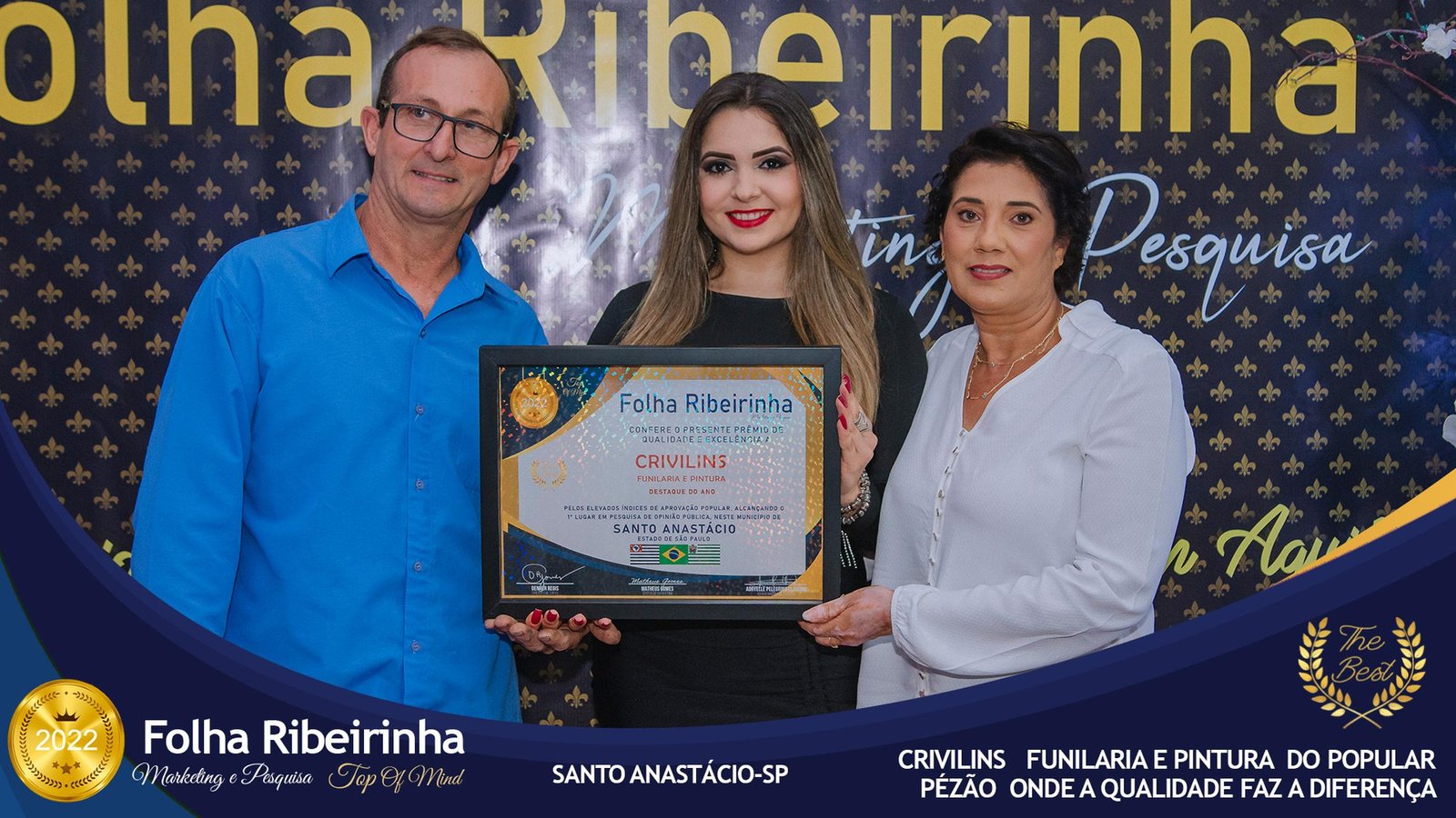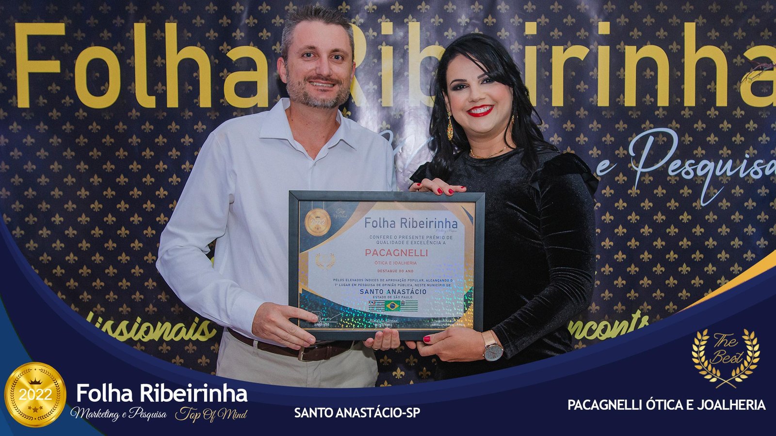 Folha Ribeirinha Marketing, Pesquisas, Produções e Eventos apresenta as melhores Empresas, Personalidades, Empreendedores e Profissionais certificados com o Prêmio Top de Qualidade e Excelência 2022 pelo Primeiro Lugar em suas respectivas Categorias de Atuação em Pres. Bernardes, Emilianópolis e Santo Anastácio – SP.