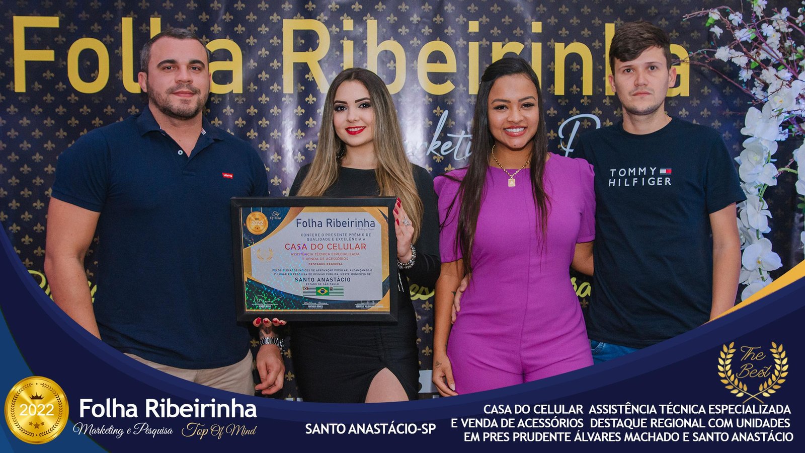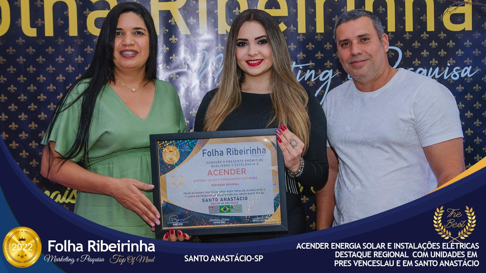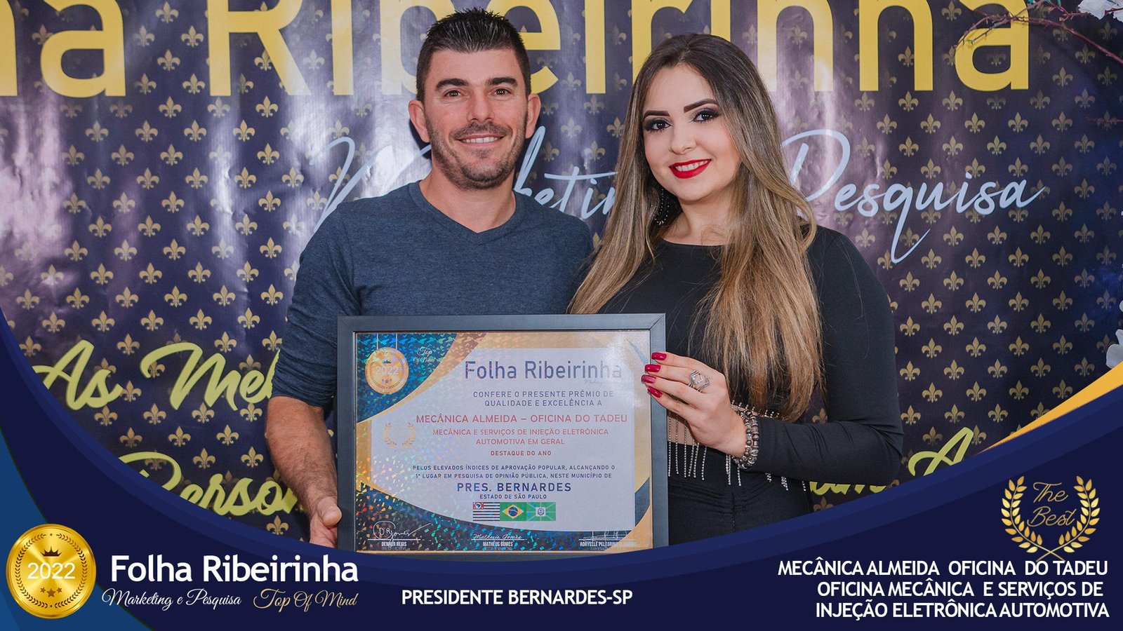 Folha Ribeirinha Marketing, Pesquisas, Produções e Eventos apresenta as melhores Empresas, Personalidades, Empreendedores e Profissionais certificados com o Prêmio Top de Qualidade e Excelência 2022 pelo Primeiro Lugar em suas respectivas Categorias de Atuação em Pres. Bernardes, Emilianópolis e Santo Anastácio – SP.