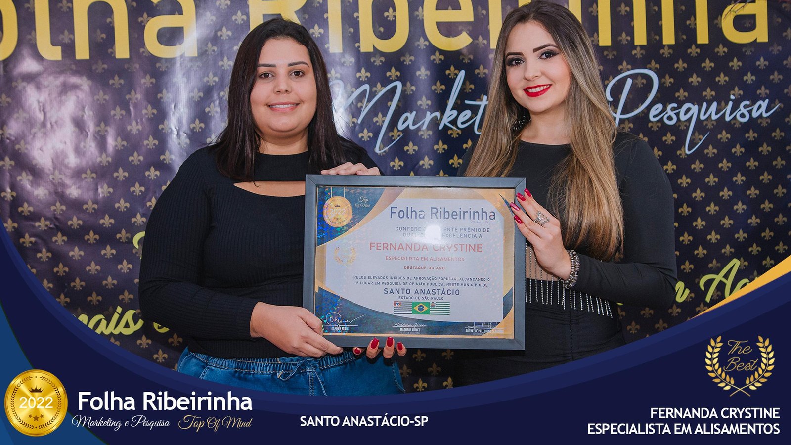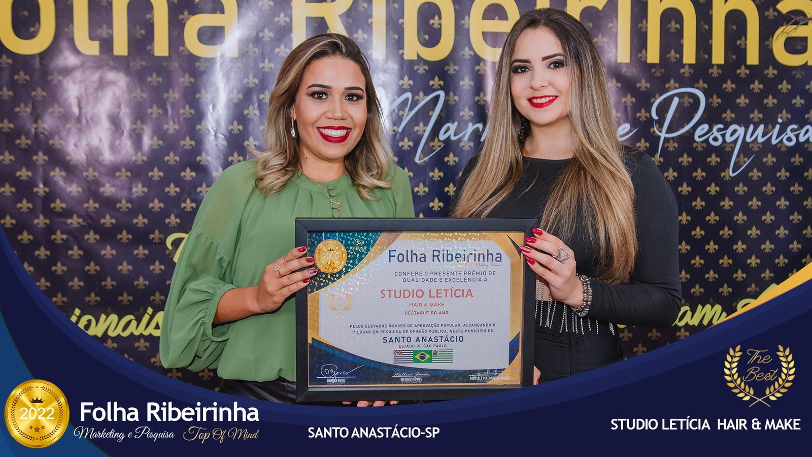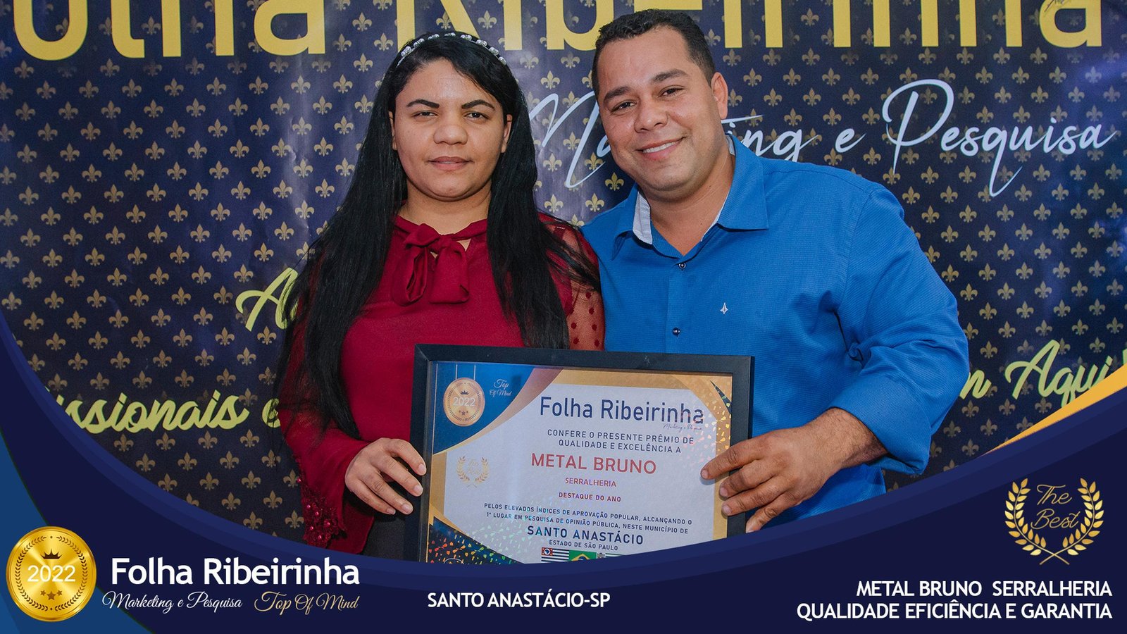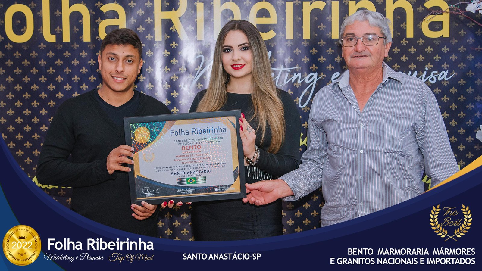 Folha Ribeirinha Marketing, Pesquisas, Produções e Eventos apresenta as melhores Empresas, Personalidades, Empreendedores e Profissionais certificados com o Prêmio Top de Qualidade e Excelência 2022 pelo Primeiro Lugar em suas respectivas Categorias de Atuação em Pres. Bernardes, Emilianópolis e Santo Anastácio – SP.