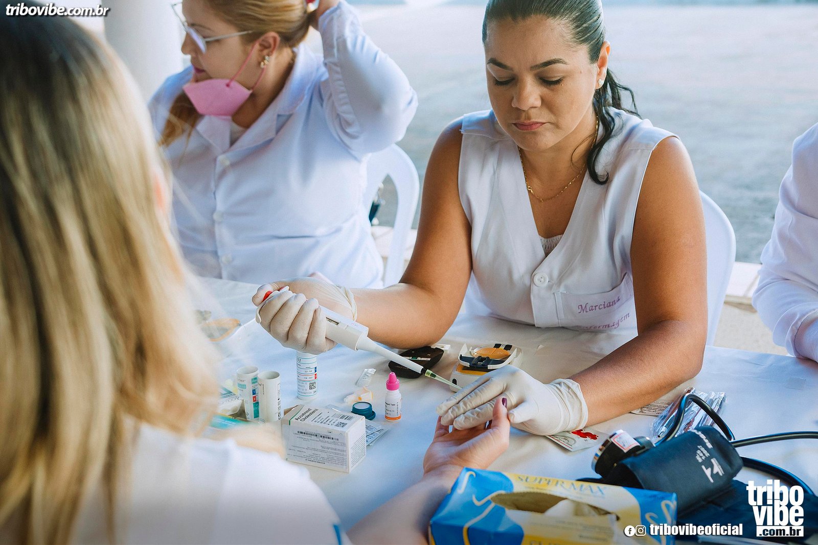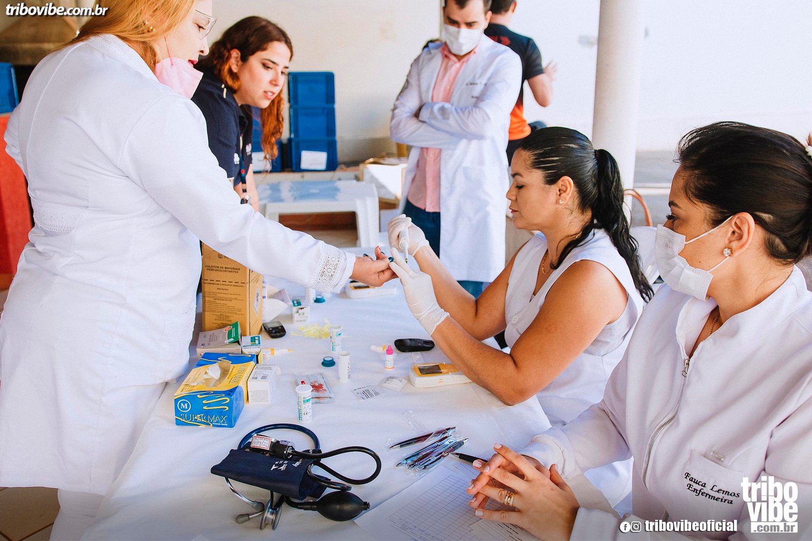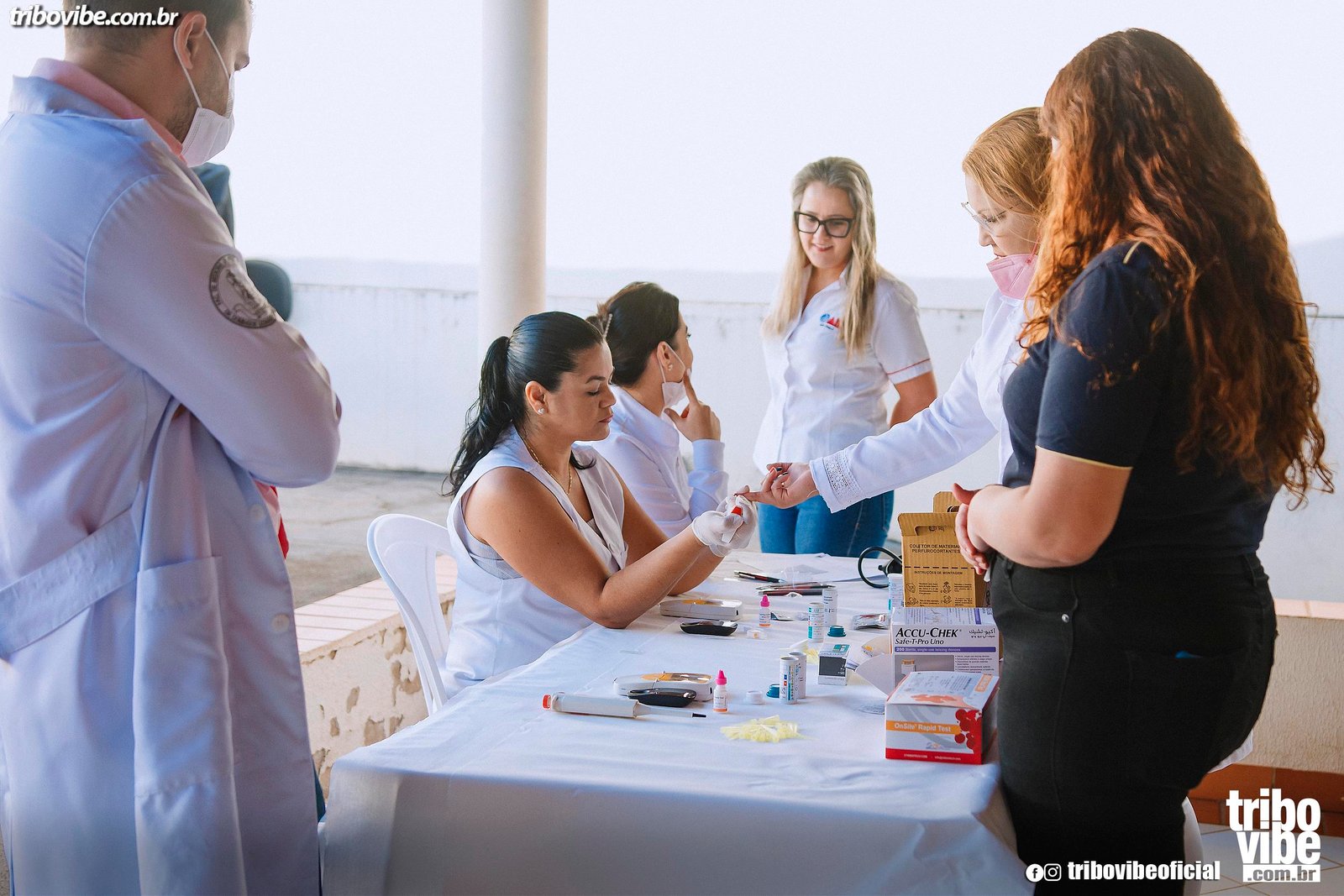 ✔ Testes de glicemia, colesterol, hepatite C e pressão arterial com parceiros da saúde.
