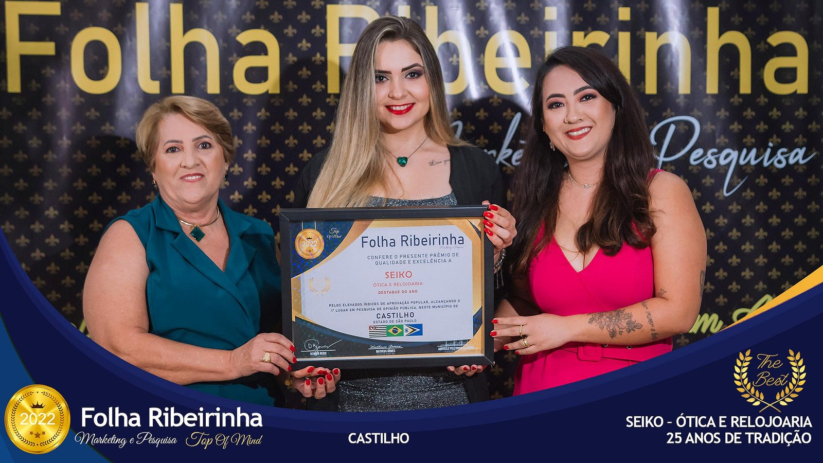 Veja como foi a noite de quarta-feira (28/09). A empresa Folha Ribeirinha Marketing, Pesquisas, Produções e Eventos apresenta as melhores Empresas, Personalidades, Empreendedores e Profissionais certificados com o Prêmio Top de Qualidade e Excelência 2022 pelo Primeiro Lugar em suas respectivas Categorias de Atuação em Nova Independência e Castilho.