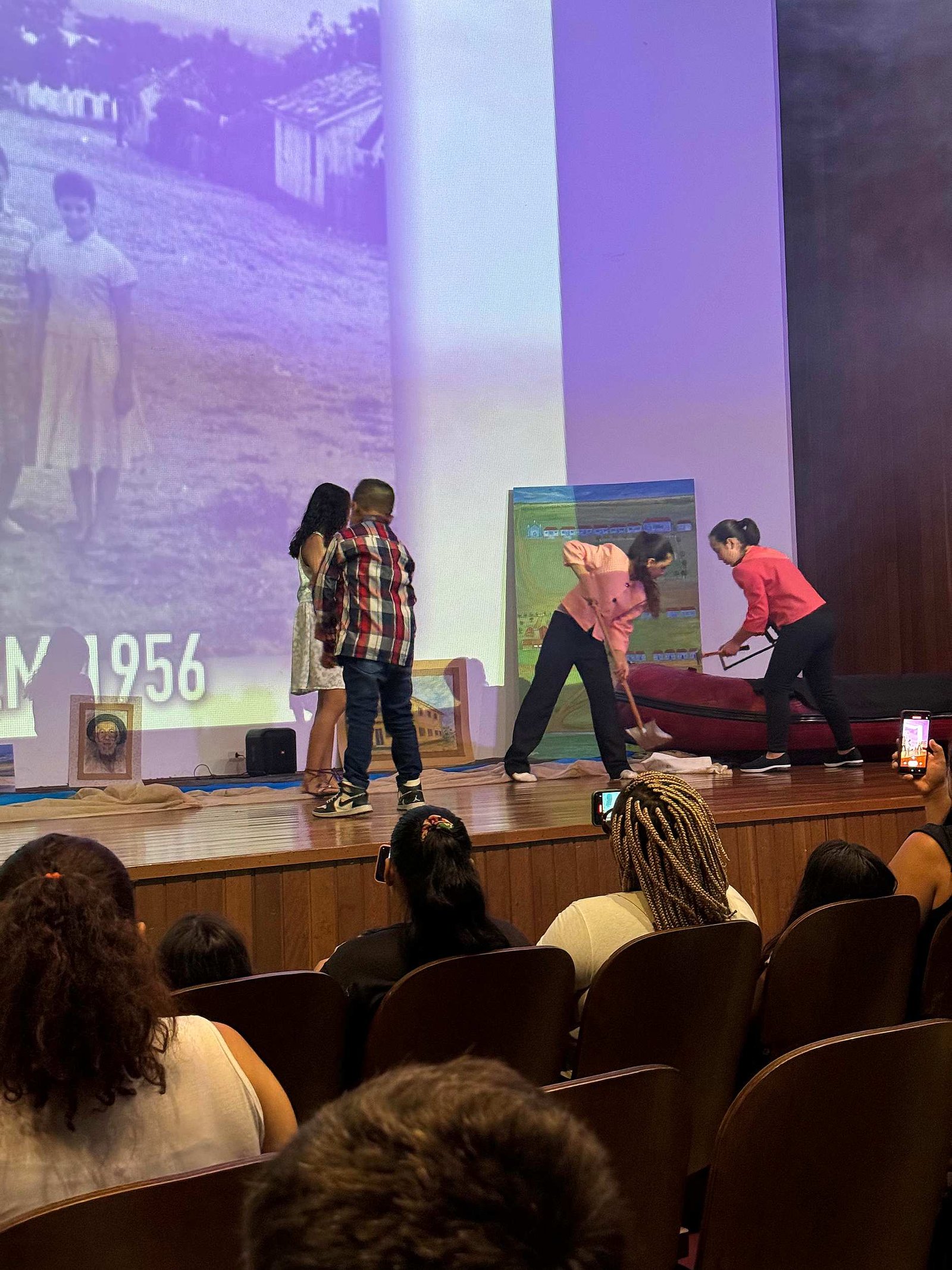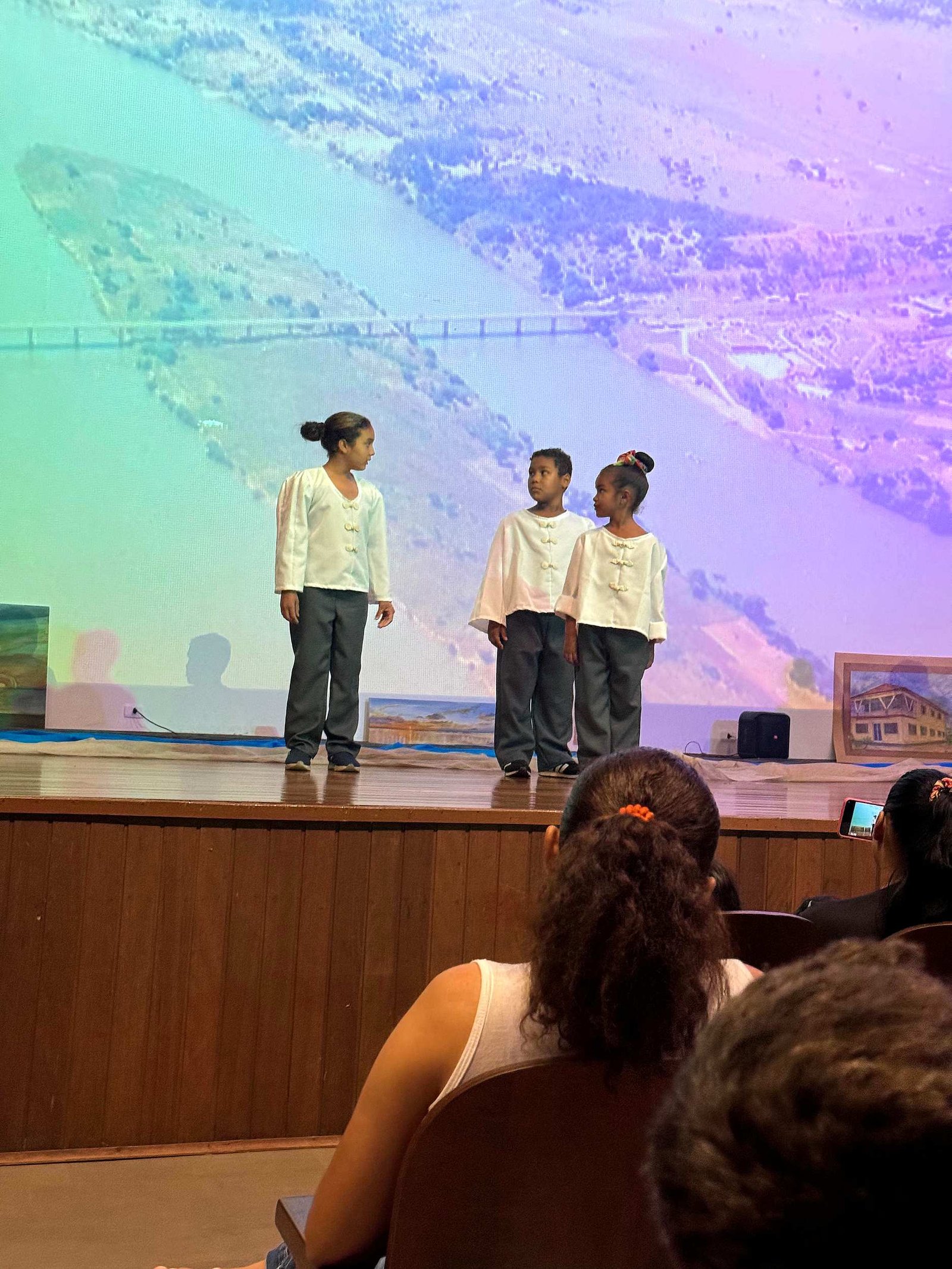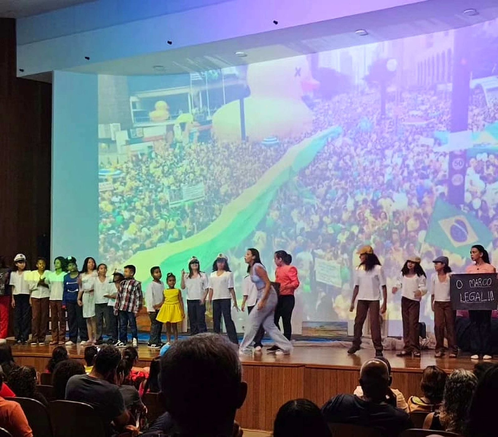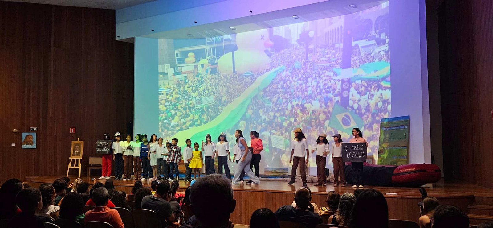A peça mergulhou na história do Porto Tibiriçá, desde os tempos em que a cidade era conhecida por diferentes nomes até sua independência, destacando os atos políticos e comunitários que moldaram sua trajetória. O público foi cativado pelas performances marcantes dos atores, especialmente pela cena da manifestação pela independência com os gritos emocionantes de “Queremos independência, queremos o Marco Legal!” conduzidos pelos personagens Eduardo e Helena.
