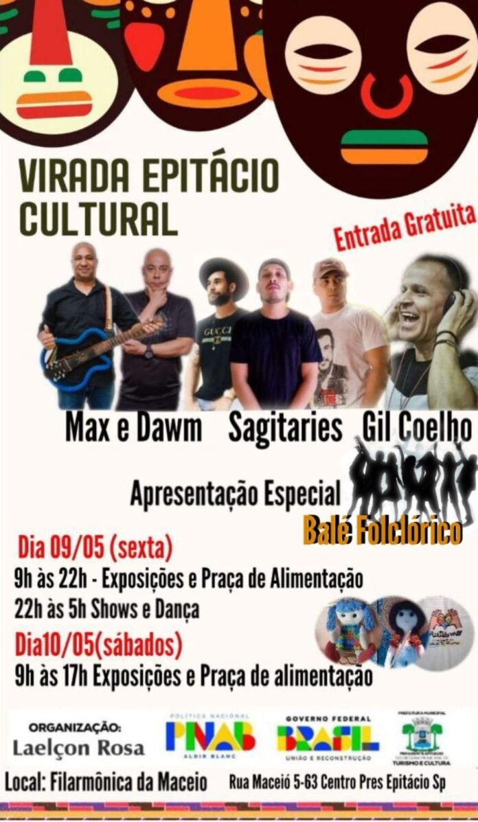 A Virada Epitácio Cultural é uma celebração da cultura local, da arte e da diversidade, reunindo talentos da região em uma experiência única. Uma oportunidade perfeita para curtir com a família e os amigos, prestigiar artistas locais e aproveitar uma estrutura completa com praça de alimentação e exposições.