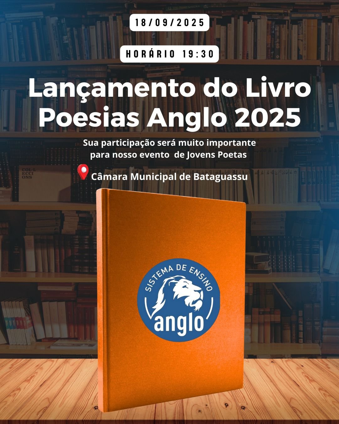 No dia 18 de setembro de 2025, às 19h30, a Câmara Municipal de Bataguassu será palco do lançamento da antologia literária “Poesias Anglo 2025”, obra que reúne criações poéticas de alunos do Instituto Ideal de Ensino de Bataguassu (IIEB), em parceria com o Sistema Anglo de Ensino.