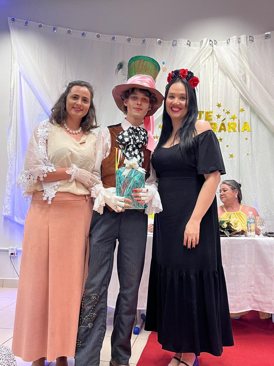 O ponto alto da noite foi o aguardado Desfile Literário, onde os estudantes deram vida a personagens icônicos da literatura, das novelas, dos mangás e da cultura pop. Desfilaram pelo palco Emília, Capitu, Rosinha (do Auto da Compadecida), Maria Bonita, Rapunzel, Chapeuzinho Amarelo, Ravena, Charles Chaplin, Cora Coralina, entre outros — todos representando a diversidade e a força das narrativas que inspiram gerações.