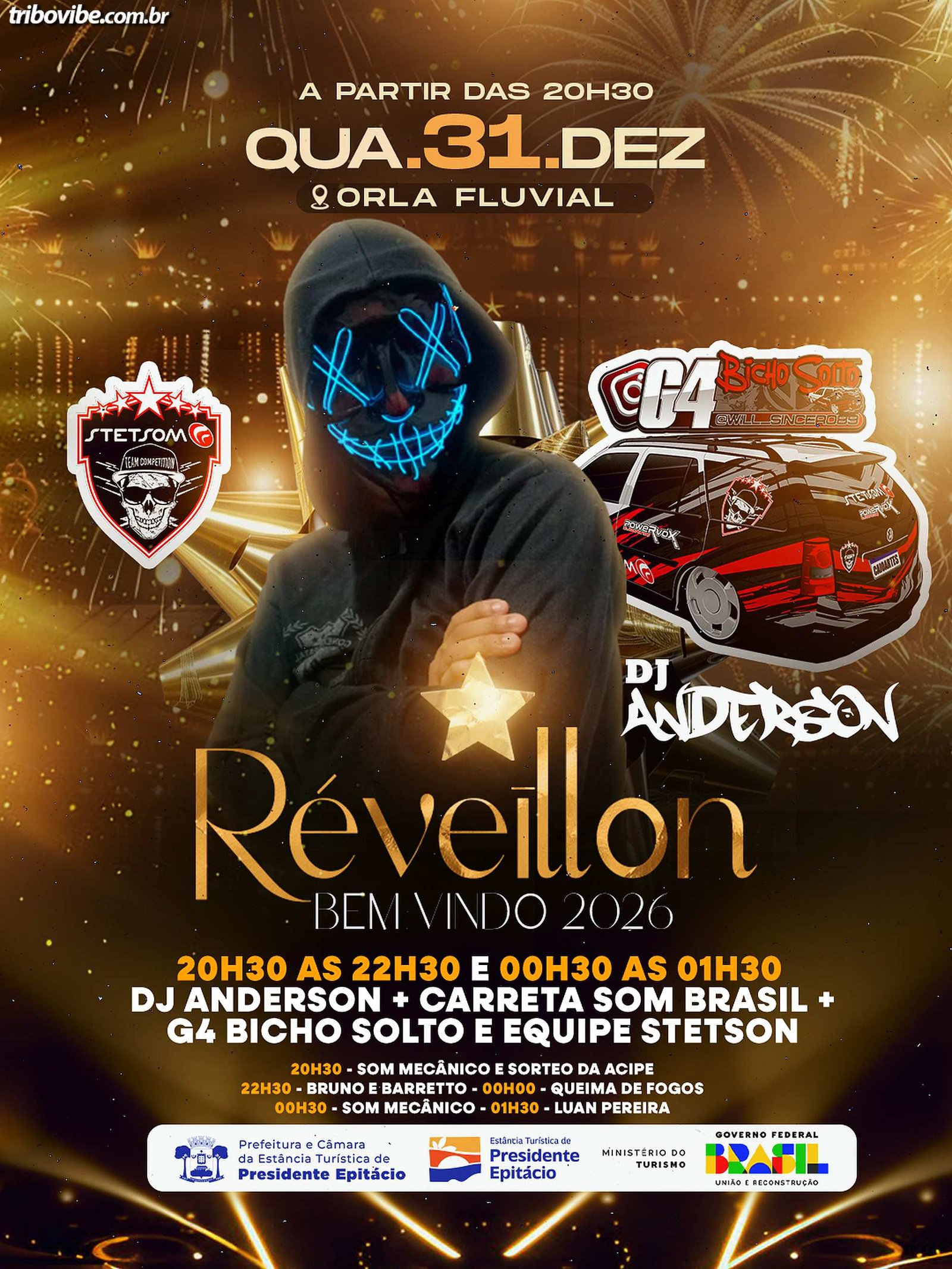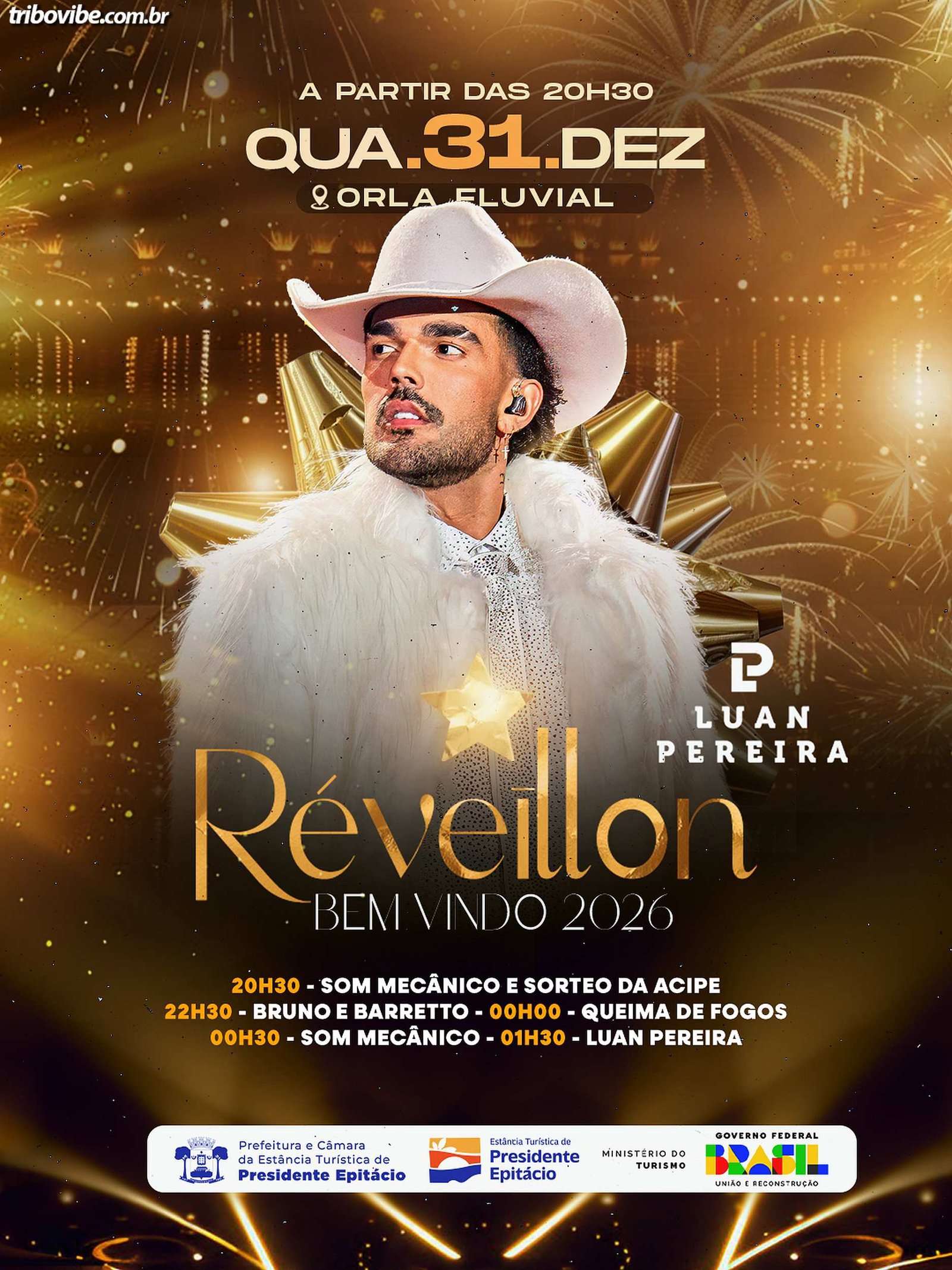 O Réveillon 2026 é uma realização da Prefeitura da Estância Turística de Presidente Epitácio, em parceria com a Câmara Municipal, com aporte do Ministério do Turismo, consolidando o município como um dos principais destinos de fim de ano da região.