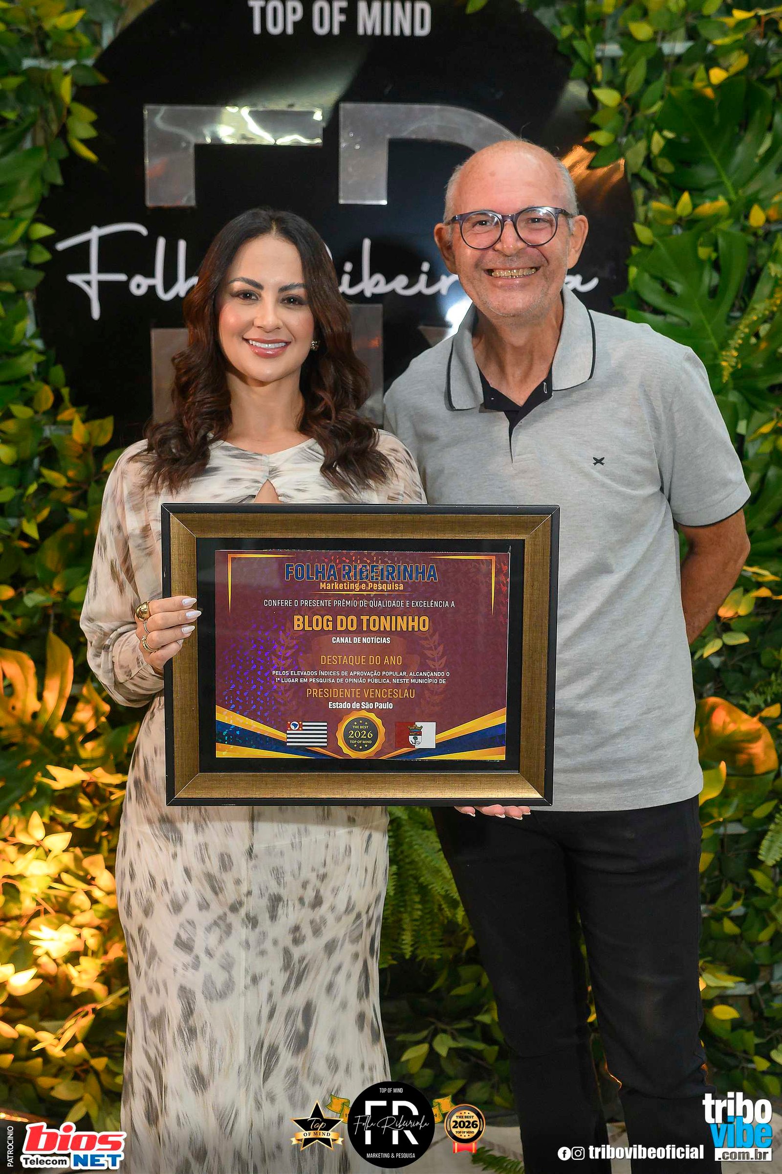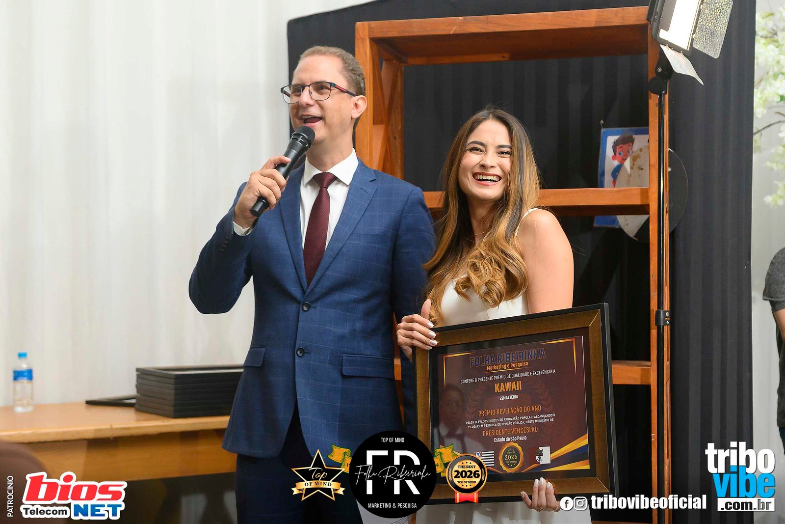 A cidade foi palco do Prêmio Top of Mind 2026, promovido pela Folha Ribeirinha Marketing e Pesquisa, reunindo empresas, empreendedores, profissionais e personalidades de destaque dos municípios de Presidente Venceslau, Marabá Paulista e Piquerobi.